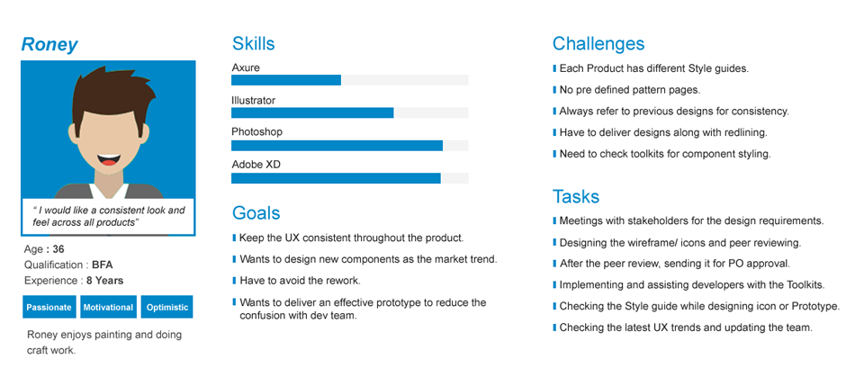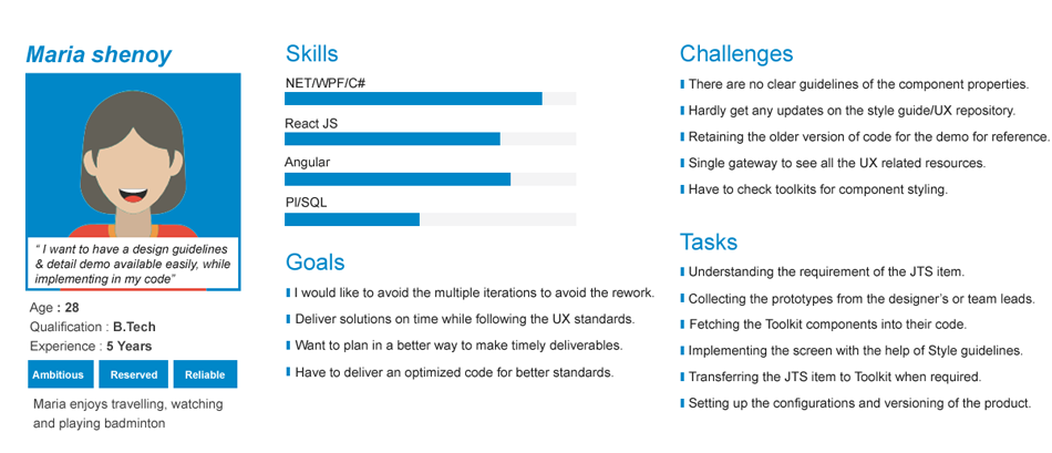 We have identified designers and developers are the prominent users and developed personas to get a better understanding of the users background, pain points, motivations and goals.