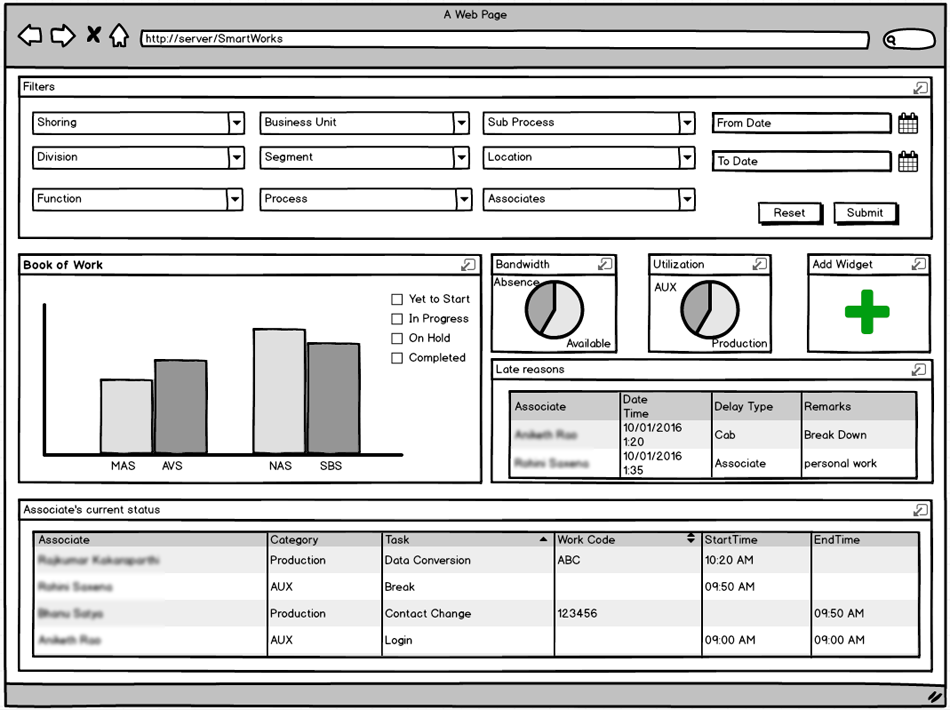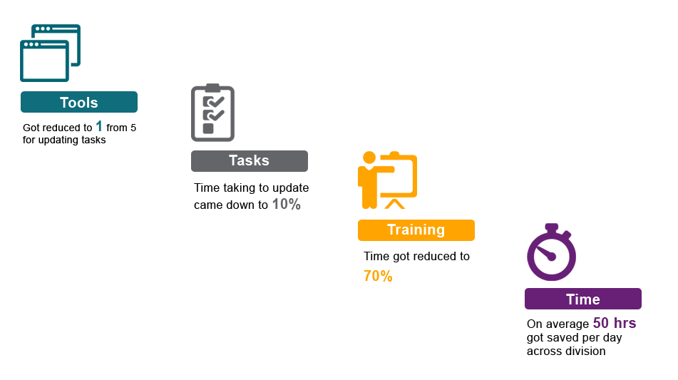 The portal was able to automate the manual work and became a single source to assiging and tracking the tasks, utilization of the resource with ease and at any point of time. The response from users was much more positive then we expected it was able to solve few pain areas of associates relating to their production hours, AUX time etc.