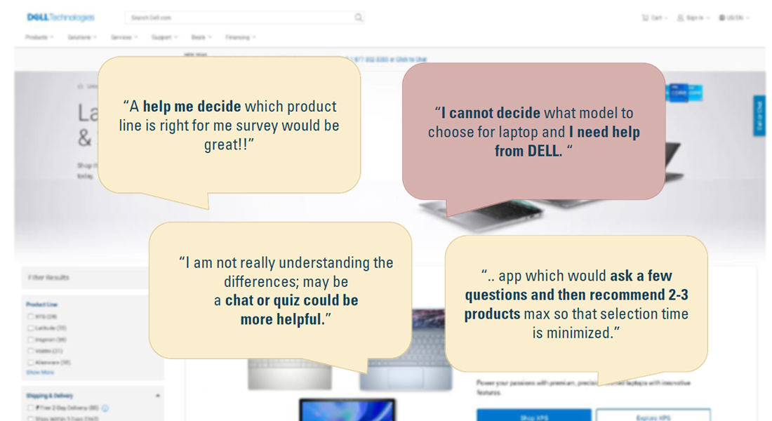 After referring to various VOCASS comments by the sales team we were presented with a problem that, customers have a challenge in understanding different laptops like Inspiron, Precision, Vostro and all other laptop brands in the Dell portfolio while making purchase.