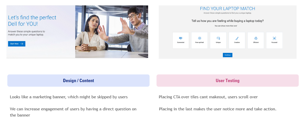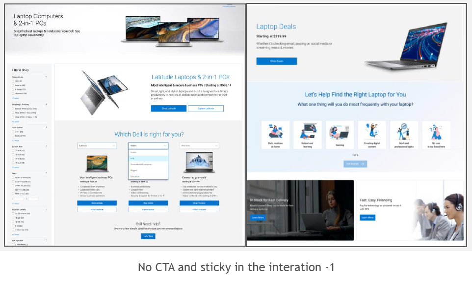 Came with different design iterations based on the user feedback like adding CTA`s, banners and different images which grab the user attention.